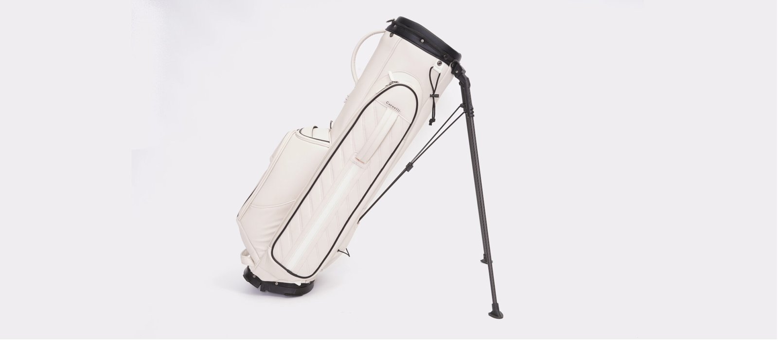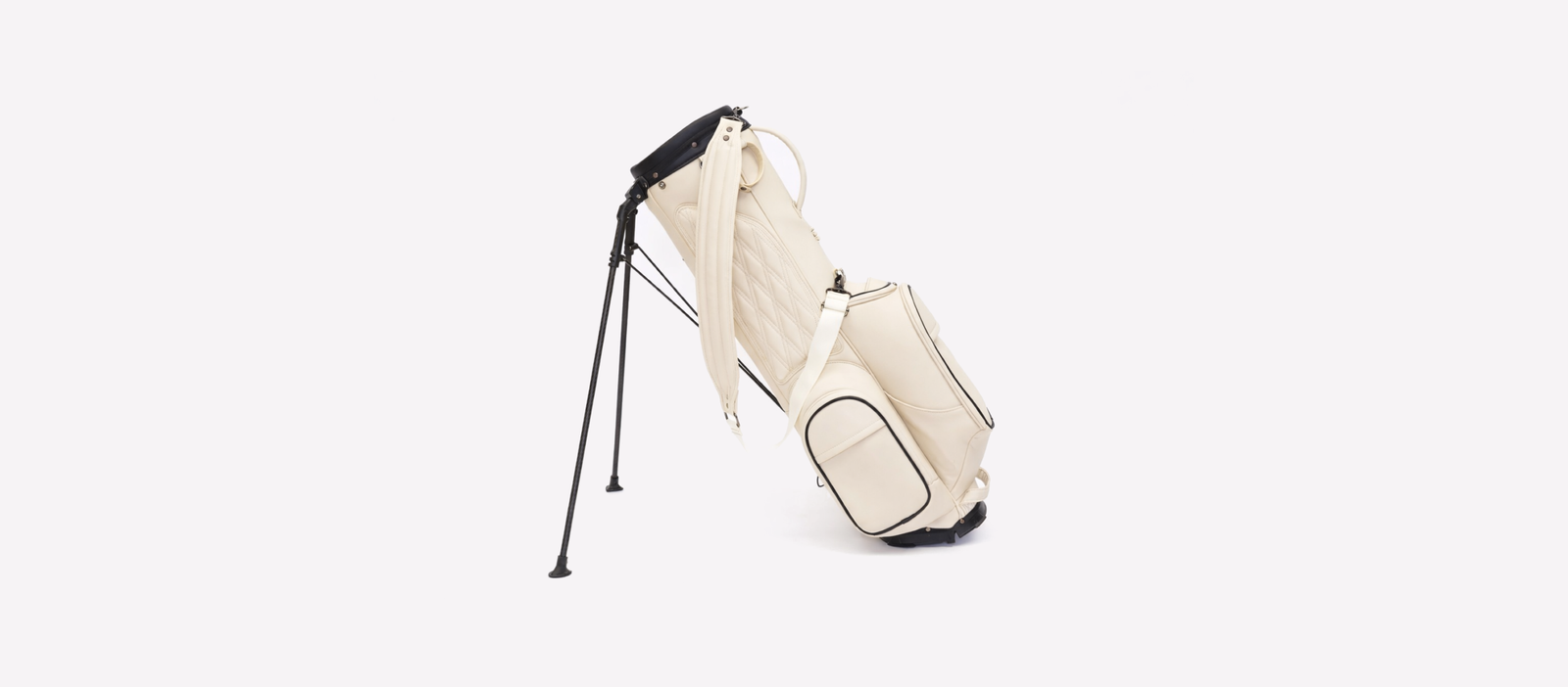 Carefully sourced, silicone-free leather. The deep black edition complements darker or muted golf outfits. €385 Deep black edition Reserve Reservation onlyThis initial release is available by reservation. Body: 6.35 lbs (2.88 KG)Single strap: 0.44 lbs (0.2 KG)Double strap: 0.75 lbs (0.34 KG)Rain hood: 0.66 lbs (0.3 KG) – Dimensions: 8.25”L x 10”W– 3-way with 3 full-length, fully enclosed dividers 14”L x 12”W x 35”H Weight: Top size: Dimensions: Body: 2.75 KG (6.06 lbs)Single strap: 0.2 KG (0.44 lbs)Double strap: 0.34 KG (0.75 lbs)Rain hood: 0.3 KG (0.66 lbs) 19 cm (L) × 14 cm (W)7.5”L x 5.5”W3-way with 2 full-length, fully enclosed dividers 30.5 cm (L) × 28 cm (W) × 89 cm (H)12”L x 11”W x 35”H Magnetic Range Finder Pocket A magnetic range finder pocket, seamlessly integrated into the bag’s silhouette and lined with soft microfiber for added protection. Insulated Beverage Pocket Integrated inside the bag to reduce direct sunlight exposure and prevent bottles from slipping or falling out during play. Easy-Access Ball Pocket A magnetic front pocket with a complimentary golf ball pouch, designed to hold up to 12 balls and clip onto the top of the bag for practice sessions. Large Storage & Valuables Pocket A side pocket features waterproof zippers, an integrated key hook, and a soft-lined compartment for secure storage of valuables Lightweight carbon fiber stands Lightweight carbon fiber stands provide stable support with minimal added weight. Single & double straps Includes single and double shoulder straps